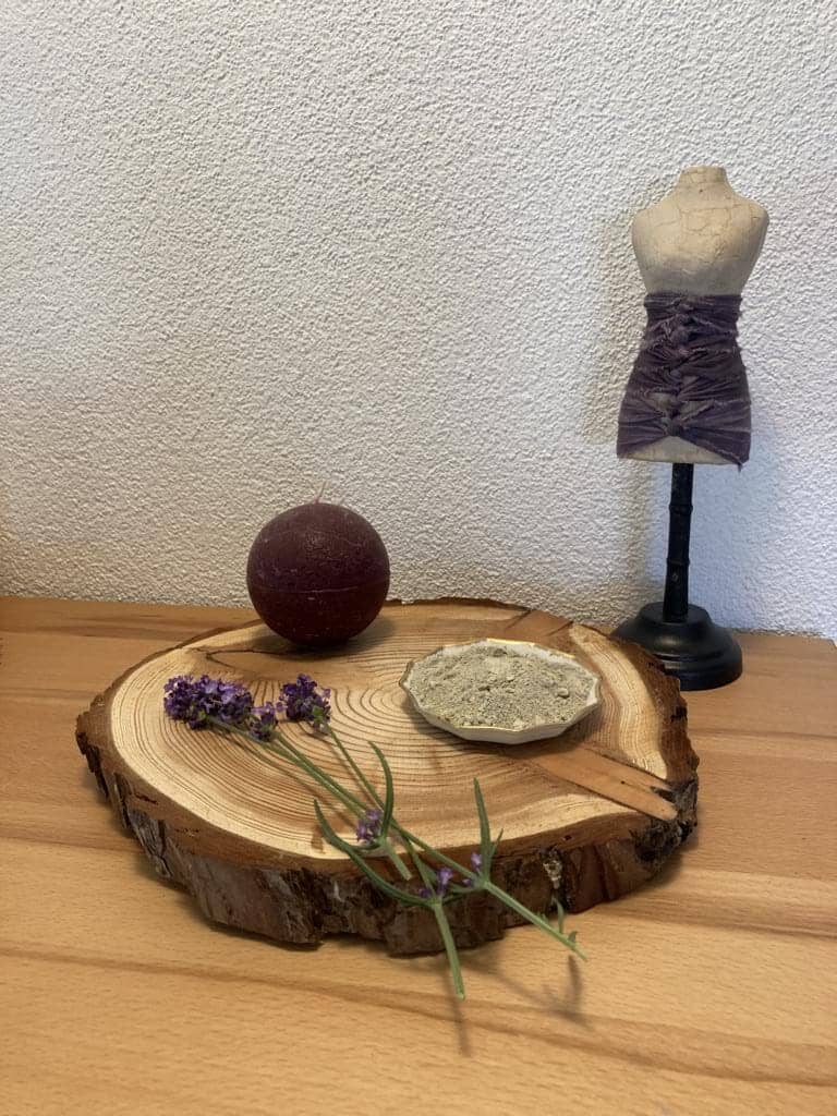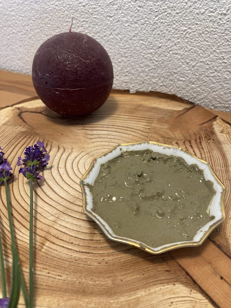 Du kannst die Paste entweder direkt auf den Bauch geben und mit dem Bellybind einwickeln oder du gibst sie auf eine Mullwindel (oder ähnliches) und machst damit einen Umschlag, den du unter dem Bellybind tragen kannst.