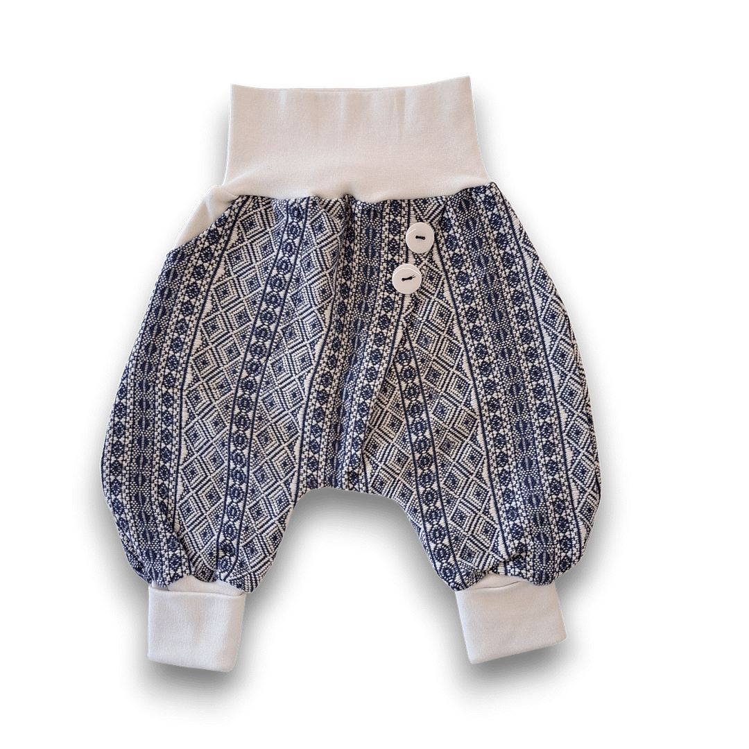 Der weite Schnitt und die langen Bündchen schaffen nicht nur maximale Bewegungsfreiheit beim Strampeln und Krabbeln, sondern machen die Hose besonders geeignet für Tragekinder und den Einsatz mit Stoffwindeln. Liebevoll gestaltete Details wie Knöpfe und Hosentasche setzen dekorative Akzente und verleihen der Hose eine funktionale sowie stilvolle Note. Die pflegeleichten Eigenschaften runden das Gesamtbild ab und machen sie zum idealen Begleiter für den Alltag.