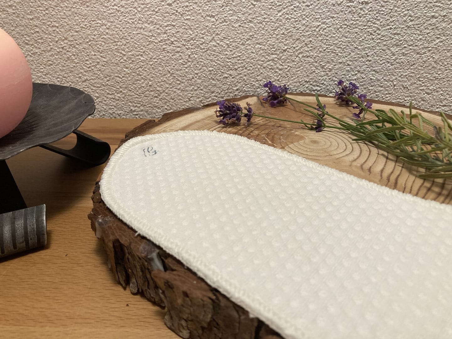 Diese Zorbeinlagen wurde in der Schweiz von Hand hergestellt aus dem Stoff der Dritten Generation von Wazoodle genäht. Die Einlage ist einlagig verarbeitet und trägt durch den dünnen Stoff sehr wenig auf.